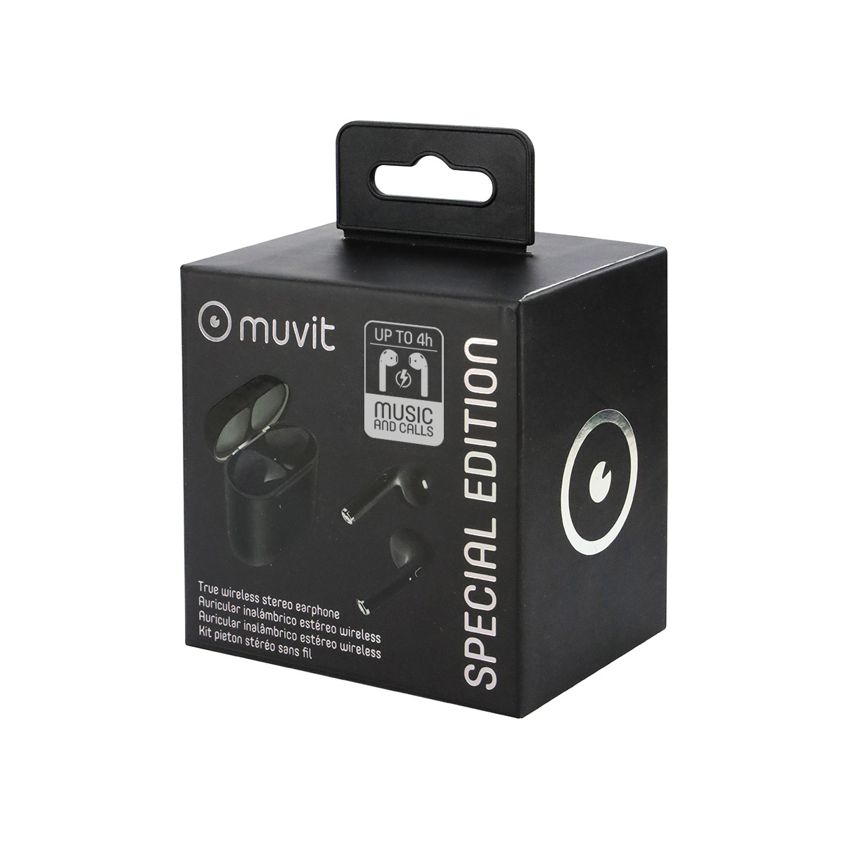 Auriculares estéreo wireless de muvit, en color negro.