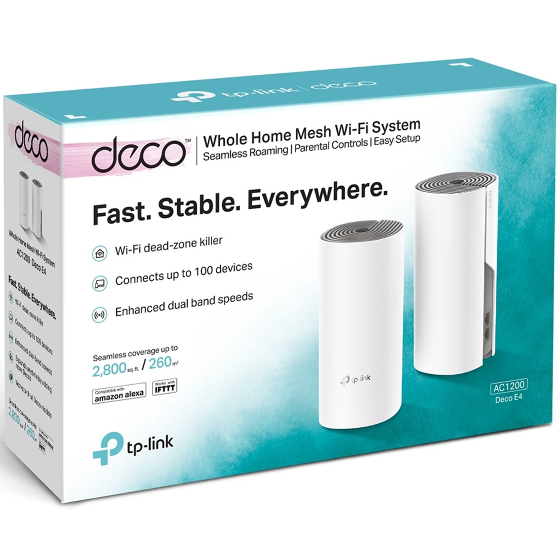 Un paquete de dos Deco E4 ofrece Wi-Fi a un área de hasta 2800 pies